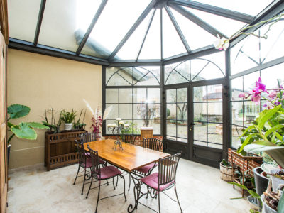 Chambre aux couleurs flamboyantes, coté jardin avec vue sur la piscine.